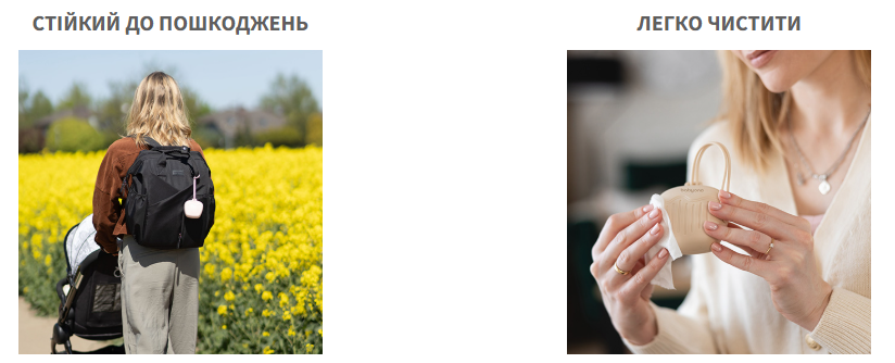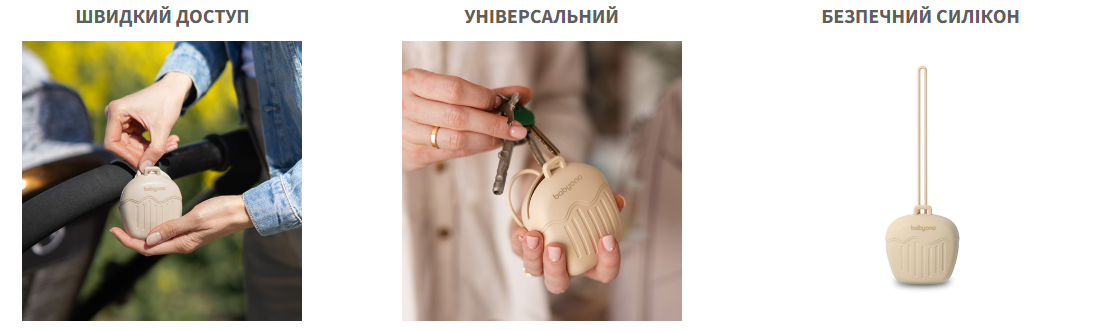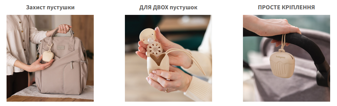 Дитина плаче, ви хочете її заспокоїти, але не можете знайти її пустушку? Більше ні! З силіконовим чохлом для пустушки це більше не проблема. Улюблена пустушка вашої дитини буде чистою та готовою до використання в будь-який час.Контейнер вміщує дві пустушки стандартного розміру. Ви можете прикріпити чохол за допомогою довгої гнучкої ручки до сумки, рюкзака, коляски або ліжечка. Ви можете швидко вставляти та виймати пустушку через спеціальний отвір – навіть однією рукою. Чохол для пустушки виготовлений з м'якого силікону. Він м’який, міцний і придатний для миття в посудомийній машині. Це безпечне та гігієнічне місце для пустушки вашої малечі. Доступний до замовлення в рожевому, блакитному та бежевому кольорі.Вік дитини: від 0 міс.