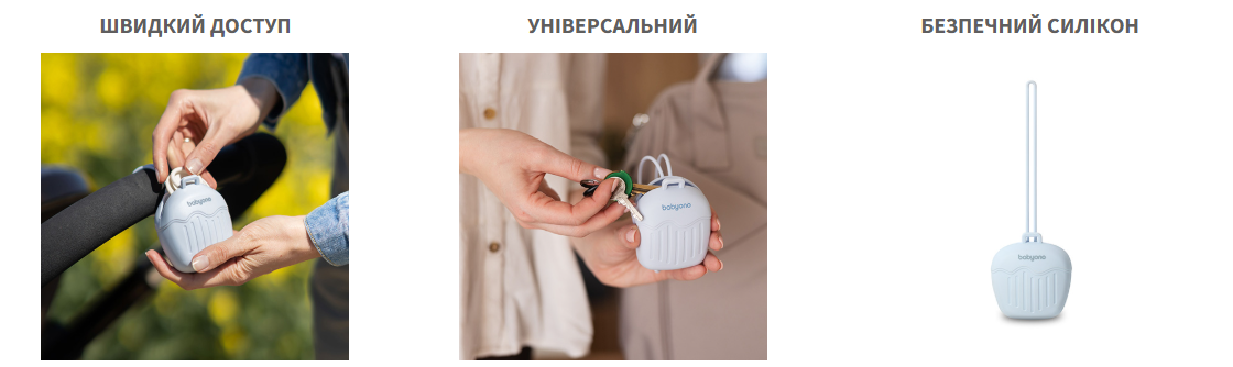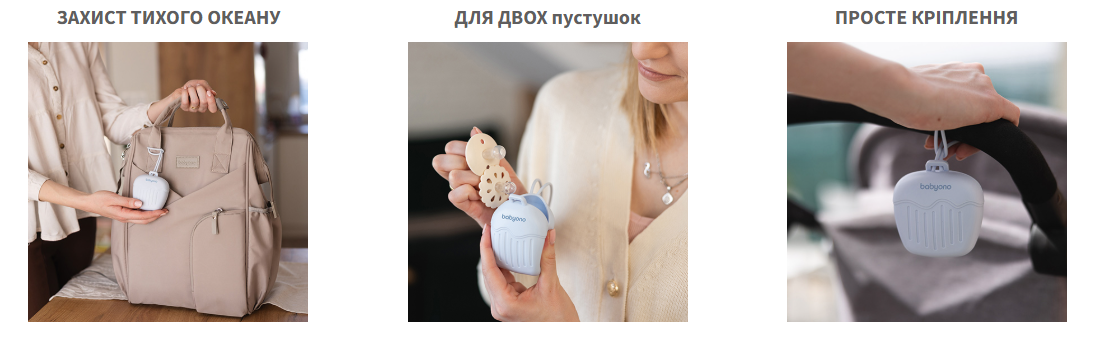 Дитина плаче, ви хочете її заспокоїти, але не можете знайти її пустушку? Більше ні! З силіконовим чохлом для пустушки це більше не проблема. Улюблена пустушка вашої дитини буде чистою та готовою до використання в будь-який час.Контейнер вміщує дві пустушки стандартного розміру. Ви можете прикріпити чохол за допомогою довгої гнучкої ручки до сумки, рюкзака, коляски або ліжечка. Ви можете швидко вставляти та виймати пустушку через спеціальний отвір – навіть однією рукою. Чохол для пустушки виготовлений з м'якого силікону. Він м’який, міцний і придатний для миття в посудомийній машині. Це безпечне та гігієнічне місце для пустушки вашої малечі. Доступний до замовлення в рожевому, блакитному та бежевому кольорі.Вік дитини: від 0 міс.