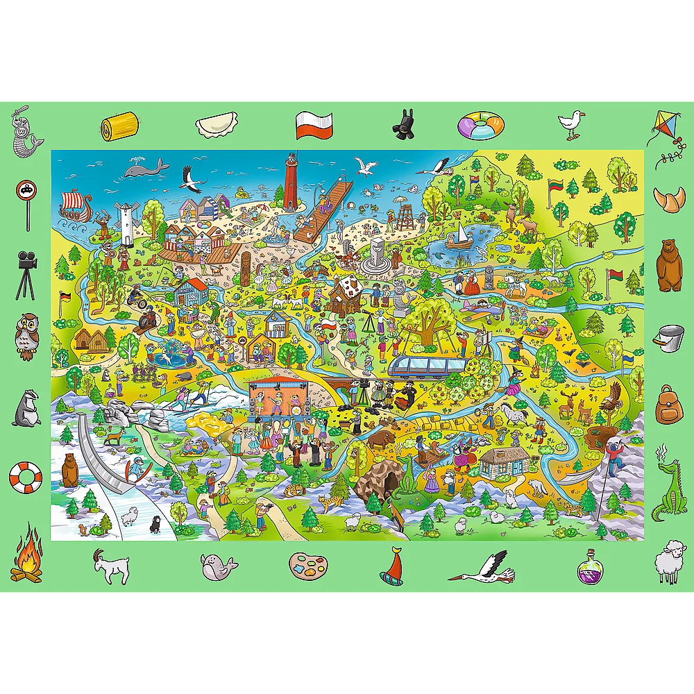 Пазли "Польща" на 100 елементів - це унікальний яскравий пазл, який обов'язково пробудить спостережливість. У цій барвистій головоломці на вас чекає незвичайна ілюстрація, повна деталей і прихованих елементів.Основне завдання - скласти пазл і знайти елементи, які зображені в рамці.