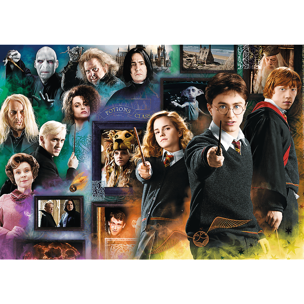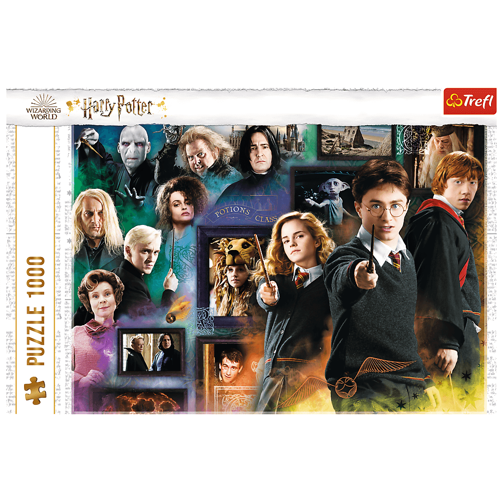 Пазл із 1000 деталей із зображенням героїв серії фільмів про Гаррі Поттера. Після складання буде створена картина розміром 683х480 мм.Виріб виготовлено з високоякісних матеріалів, із застосуванням спеціального світловідбиваючого паперу, що полегшує його укладання. Виріб виготовлено в Польщі, а для виготовлення використані екологічні матеріали.