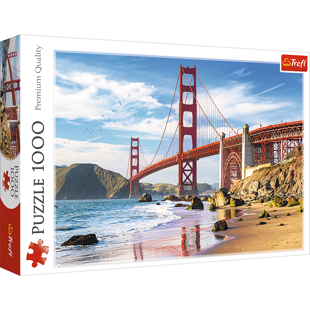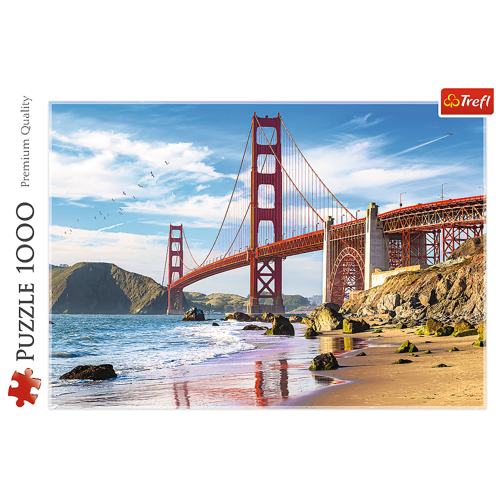 Головоломка, що складається з 1000 елементів, що показують вид на міст Золотих воріт у Сан -Франциско. Після прокладки буде створено вражаюче зображення з розмірами 683x480 мм.Головоломки виготовлені з високоякісних матеріалів, використовуючи спеціальний паперовий паперовий папір, що полегшує прокладку. Продукт був виготовлений у Польщі, а екологічні матеріали використовували для виробництва.