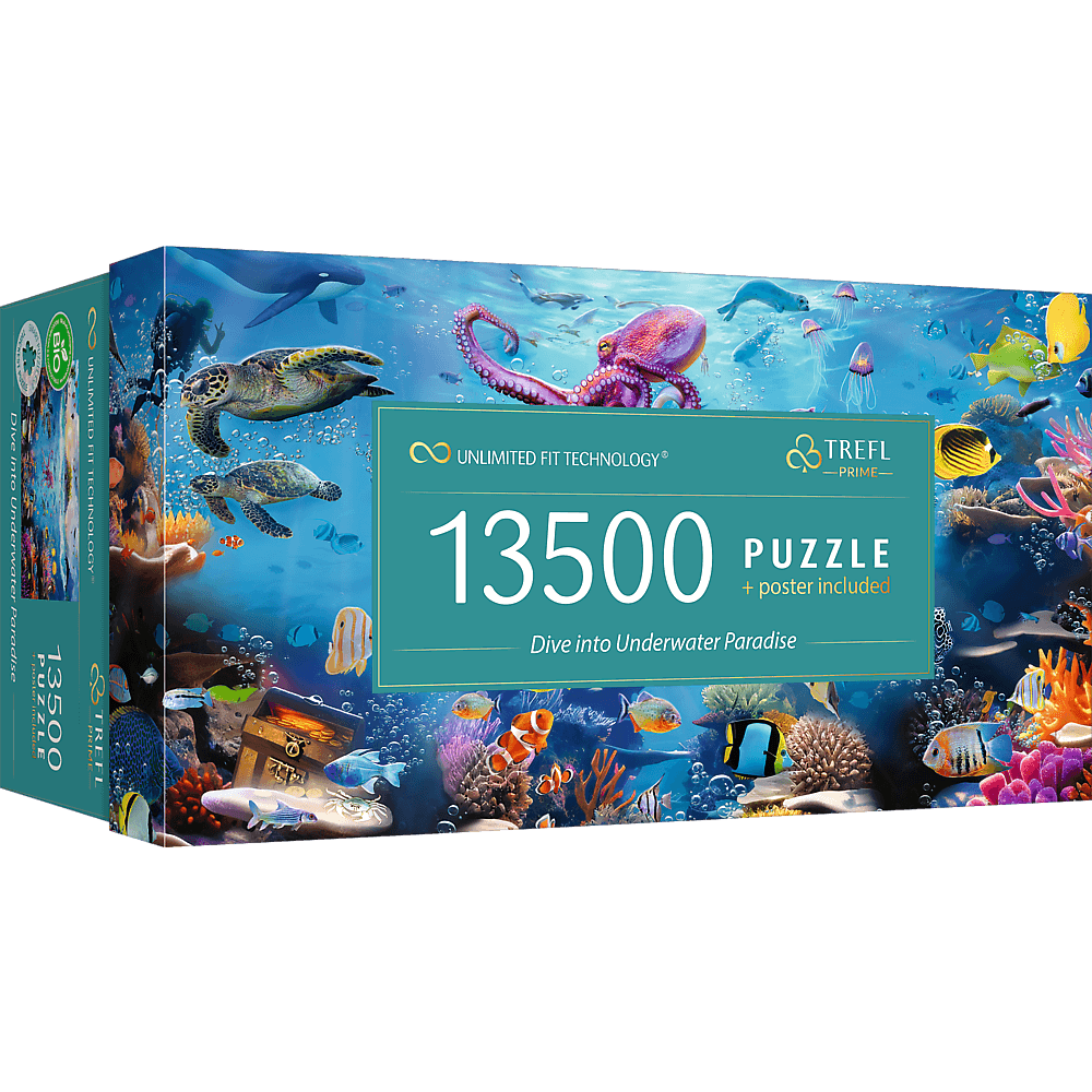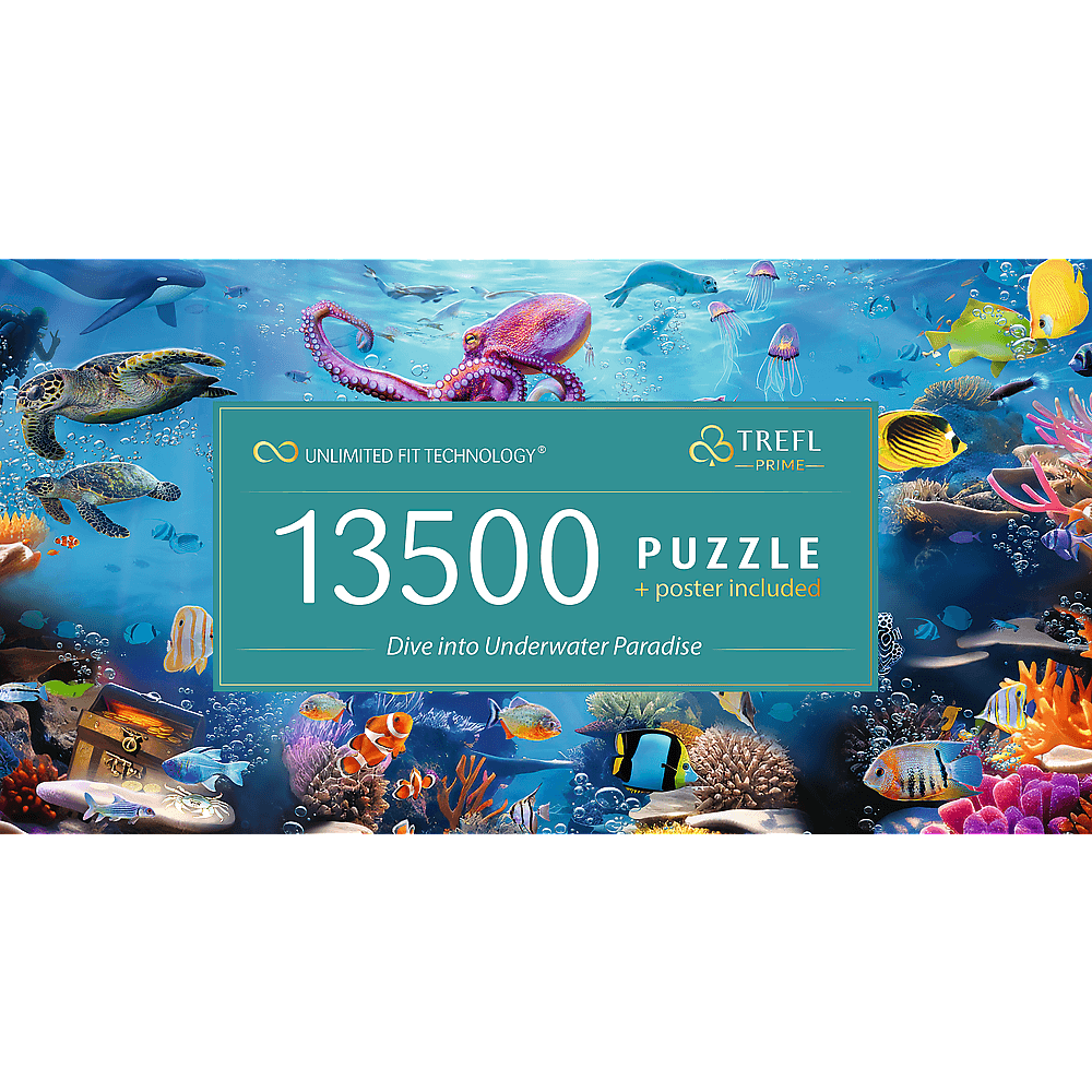 Відкрийте для себе головоломку Trefl Prime UFT - Пориньте у підводний рай , яка складається з вражаючих 13 500 елементів ! Подорожуйте під поверхнею океану, щоб помилуватися дивовижним світом водних рослин і тварин.Чим вони виділяються?