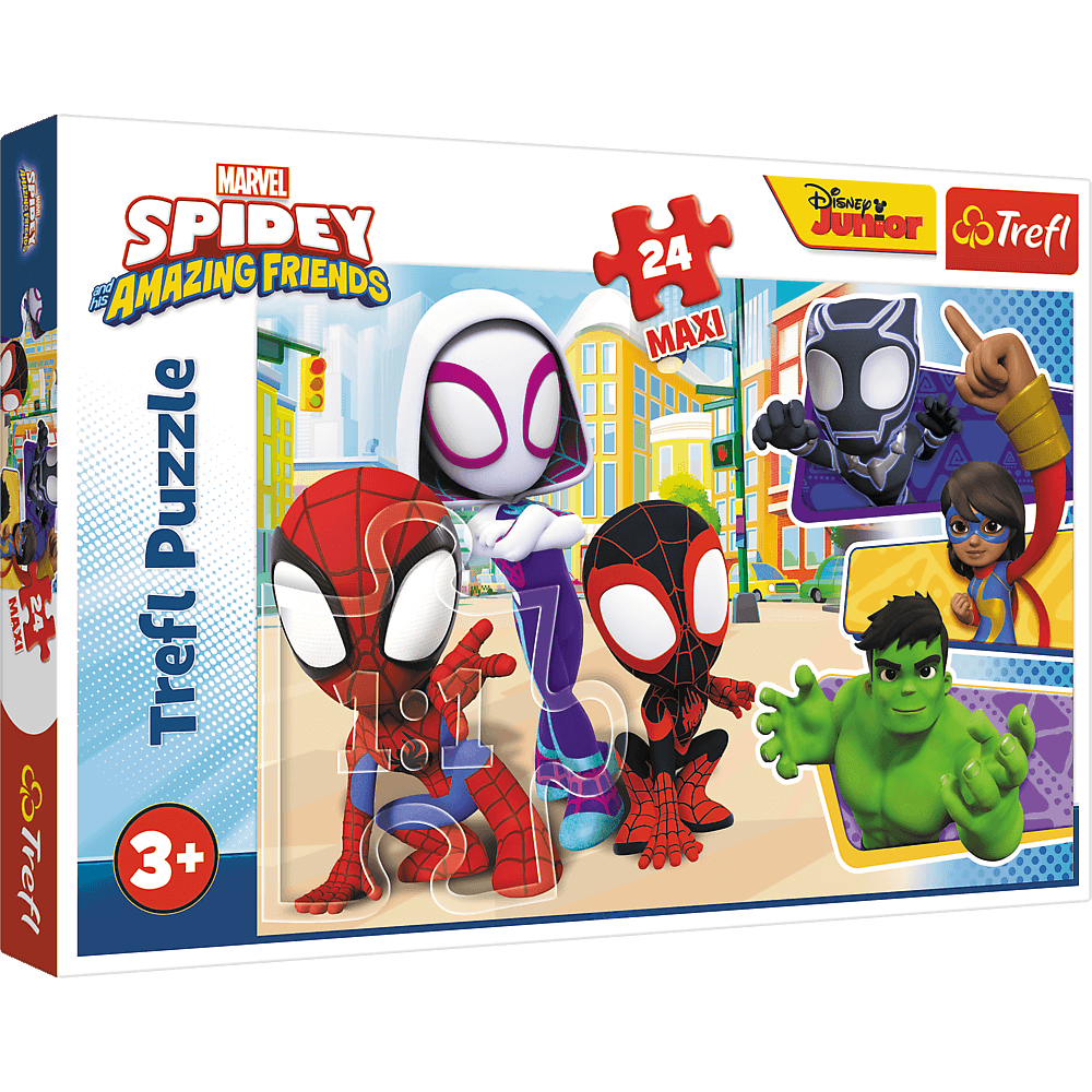 "Друзі Spidey" - це головоломка, що складається з 24 елементів максі, розроблених для маленьких шанувальників Marvel. Після прокладки буде створено зображення з розміром 600x400 мм.Продукт був виготовлений з високоякісних матеріалів, використовуючи спеціальний паперовий папір, що відбиває світло, що полегшує проведення. Продукт був виготовлений у Польщі, а екологічні матеріали використовували для виробництва.