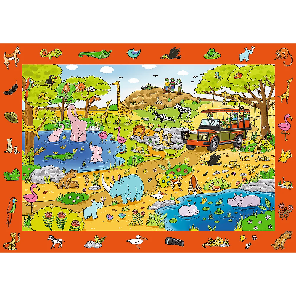 Пазли "Сафарі" на 24 елементи - це унікальний яскравий пазл, який обов'язково пробудить спостережливість. У цій барвистій головоломці на вас чекає незвичайна ілюстрація, повна деталей і прихованих елементів.Основне завдання - скласти пазл і знайти елементи, які зображені в рамці.