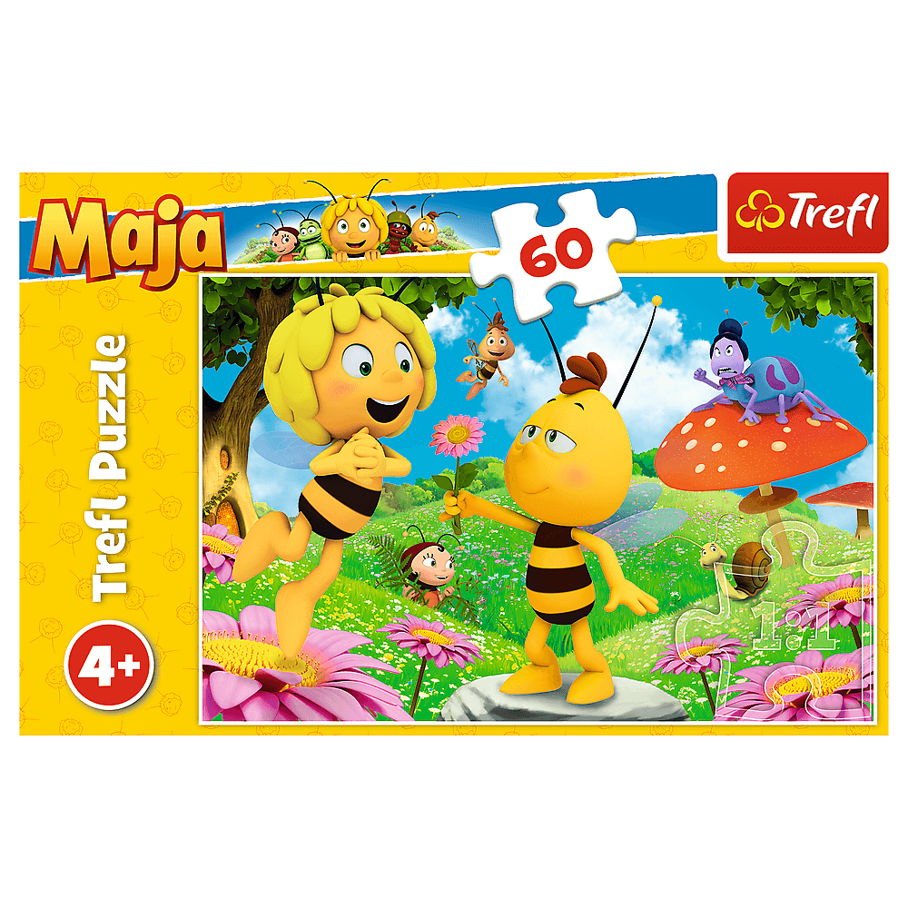 Квітка для Май - це головоломка, що складається з 60 елементів, призначених для всіх шанувальників та шанувальників бджоли та її друзів. Після закладення головоломки буде створено зображення 330x220 мм.Продукт був виготовлений з високоякісних матеріалів, використовуючи спеціальний паперовий папір, що відбиває світло, що полегшує проведення. Продукт був виготовлений у Польщі, а екологічні матеріали використовували для виробництва.