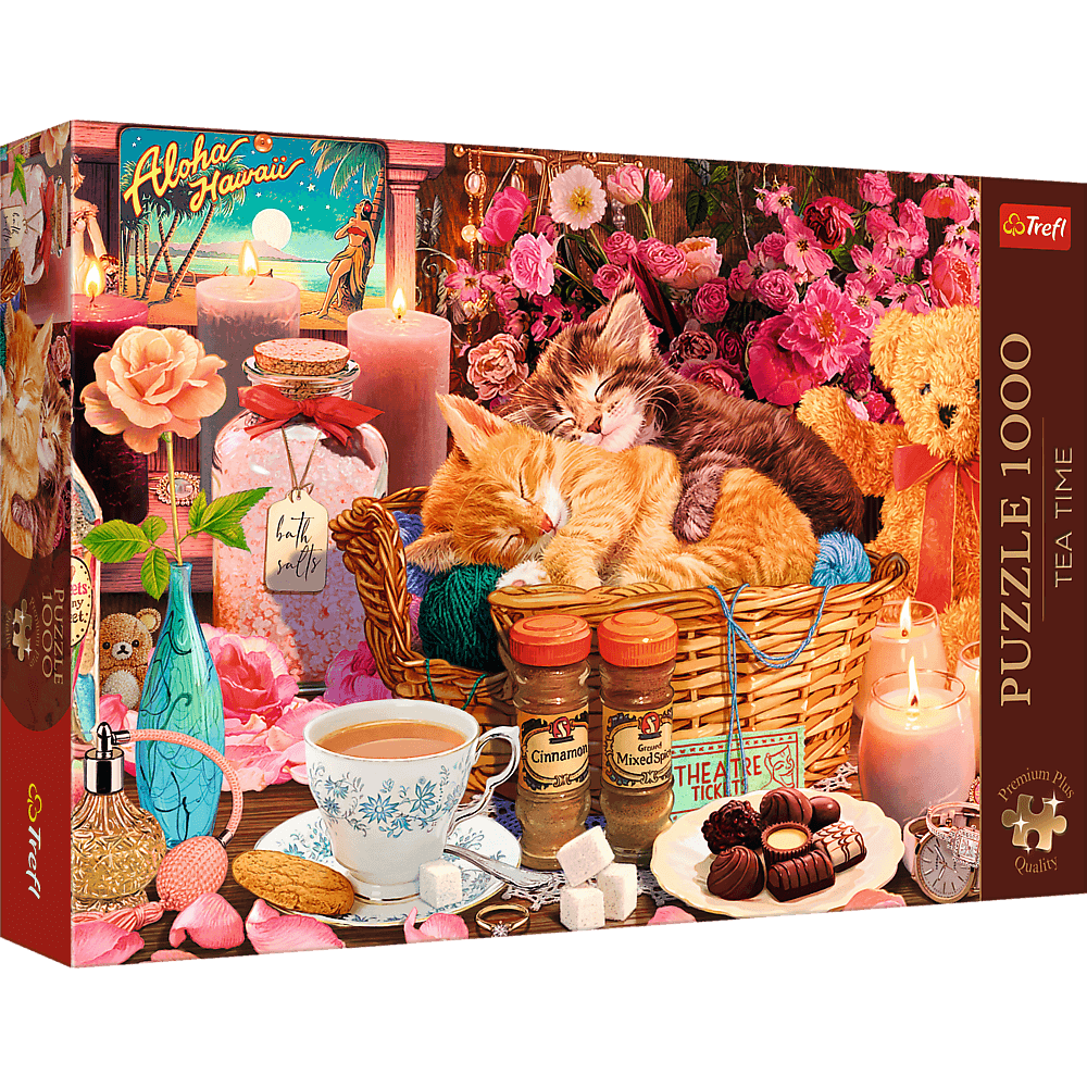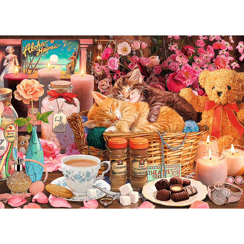 Пазли «Все приємне» представляють різноманітні задоволення: солодощі, квіти, кошенята, які сплять у кошику та багато іншого. Після їх упорядкування буде створено зображення розміром 683x480 мм.