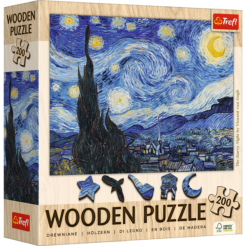 *Пазли фігурні з дерева - (200 елм.) - "Зоряна ніч - Вінсент ван Гог" / Trefl