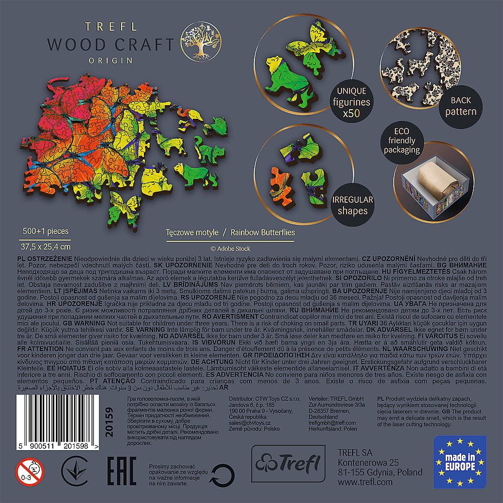 Пазли фігурні з дерева 500 + 1 елм "Кольорові метелики"