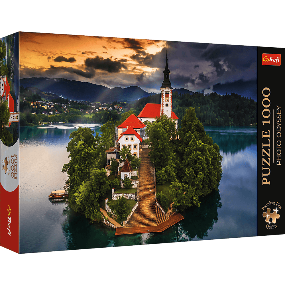 Пазли Озеро Блед, Словенія зображують знамениту словенську церкву, розташовану на маленькому острові в озері. Після їх упорядкування буде створено зображення розміром 683x480 мм.