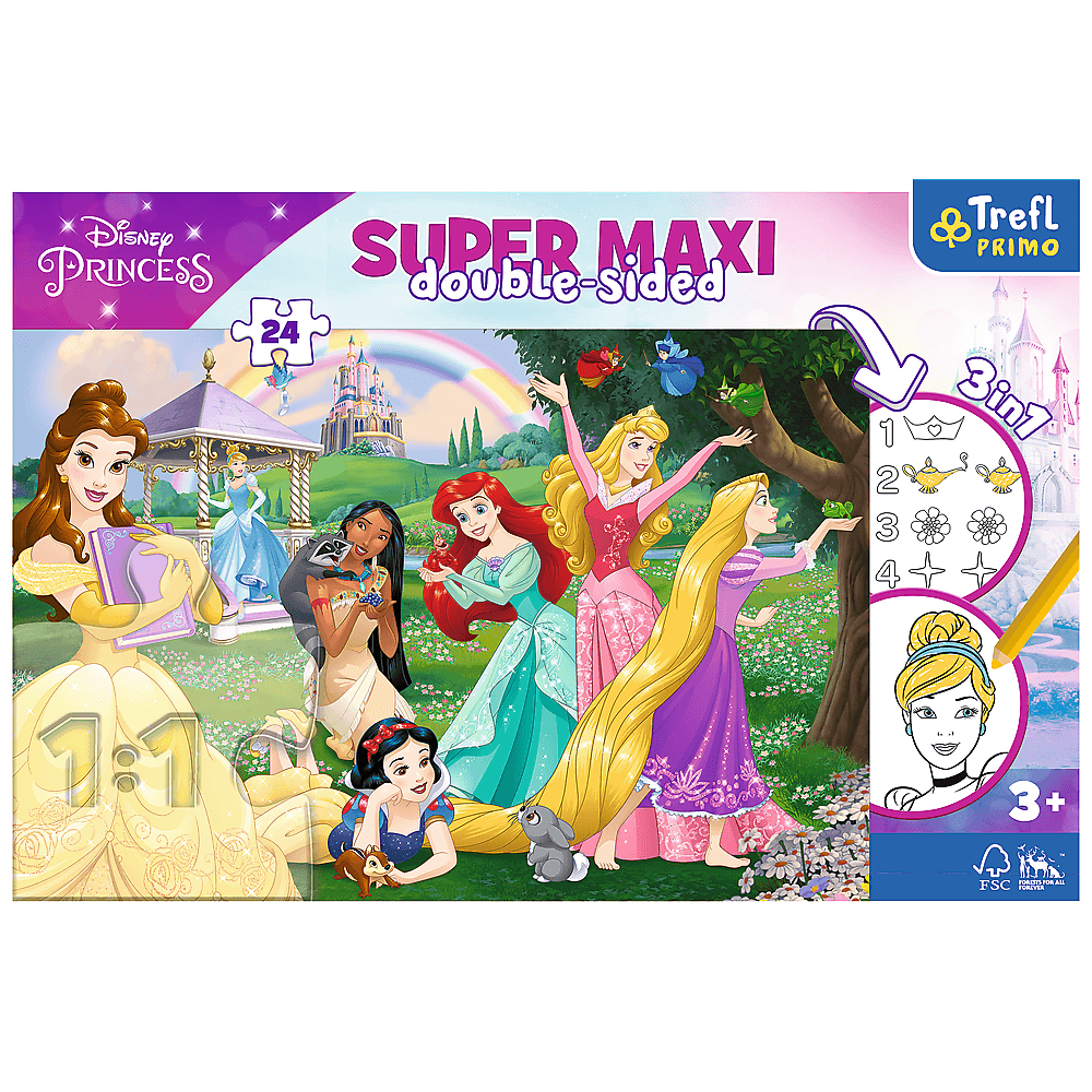 Пазли + розмальовка - (24 елм.SUPER МАХІ) - "Щастливі принцеси"