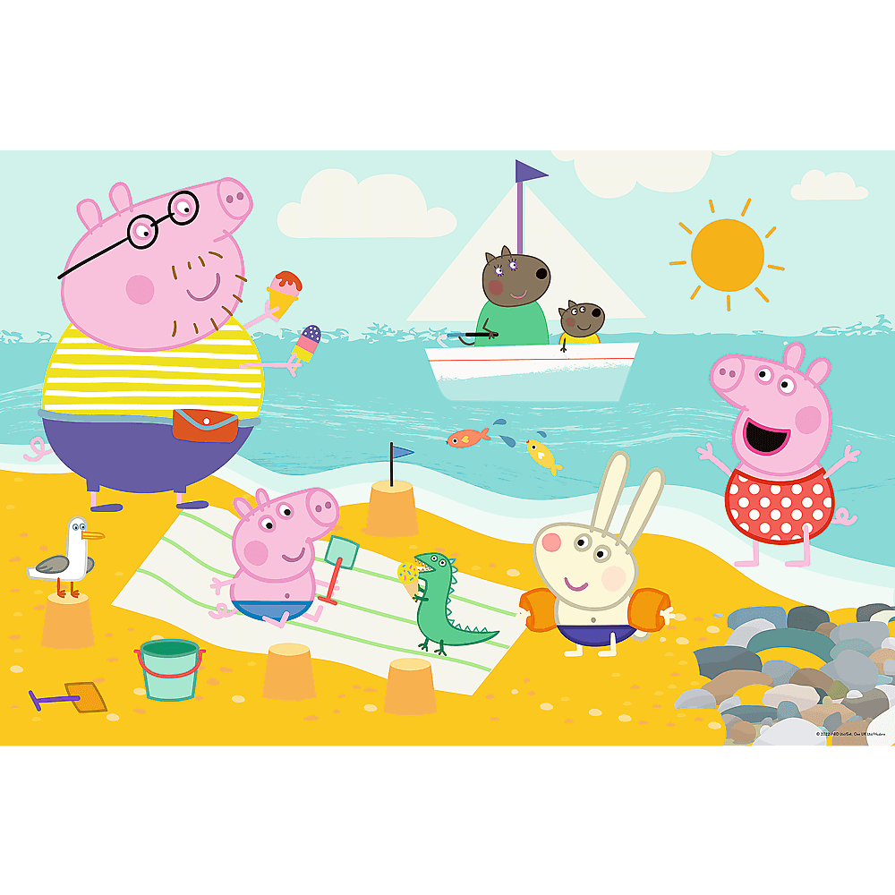 Радісний бадьорий день - це головоломка, що складається з 24 великих елементів, створених для любителів казки Peppa Pig.На звороті головоломки є книга -розмальовки та гра з розмальовками, які диверсифікують будь -яку забаву. Поєднайте велику забаву з радістю створити себе!