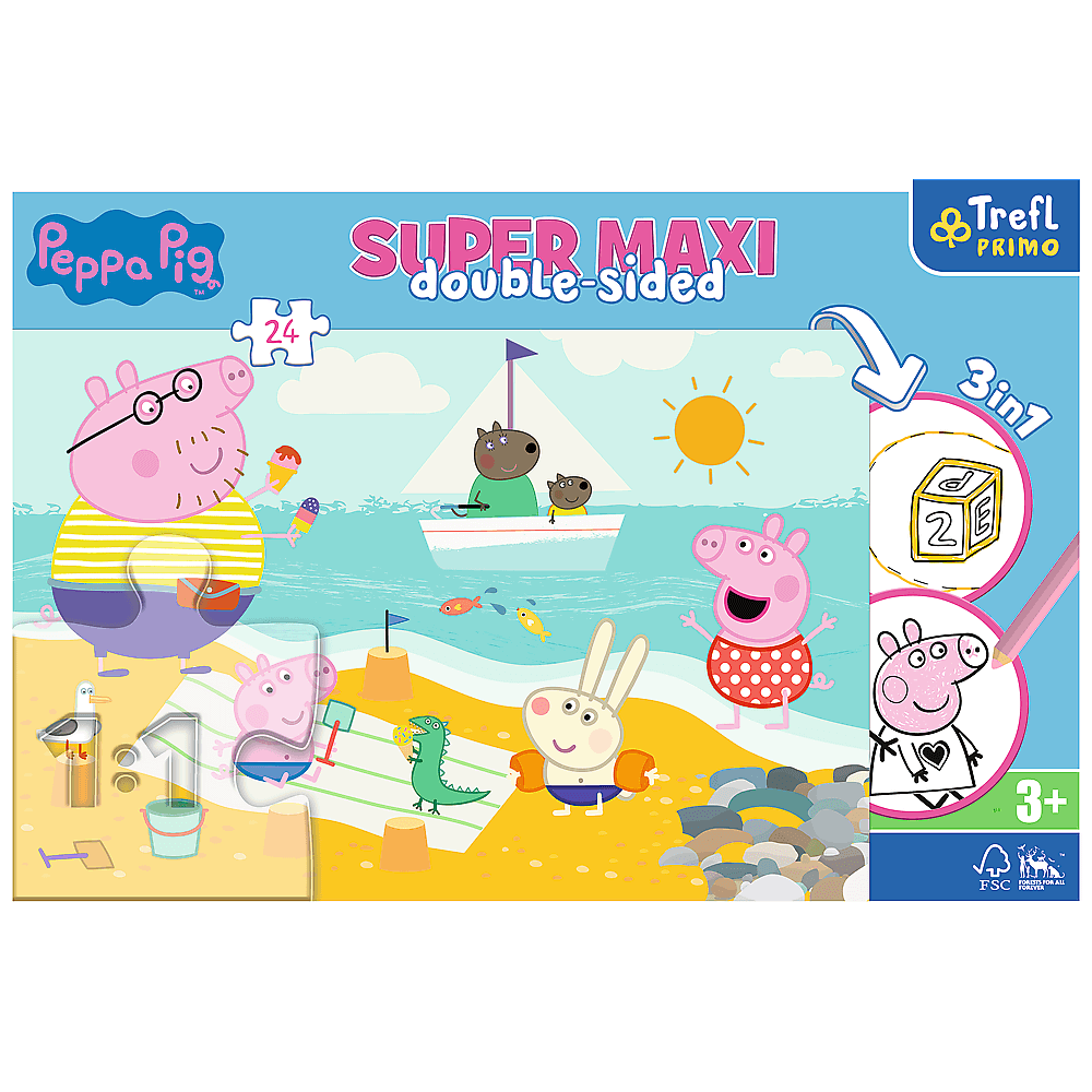 Пазли + розмальовка - (24 елм.SUPER МАХІ) - "Щастливий день" / Веселе поросятко