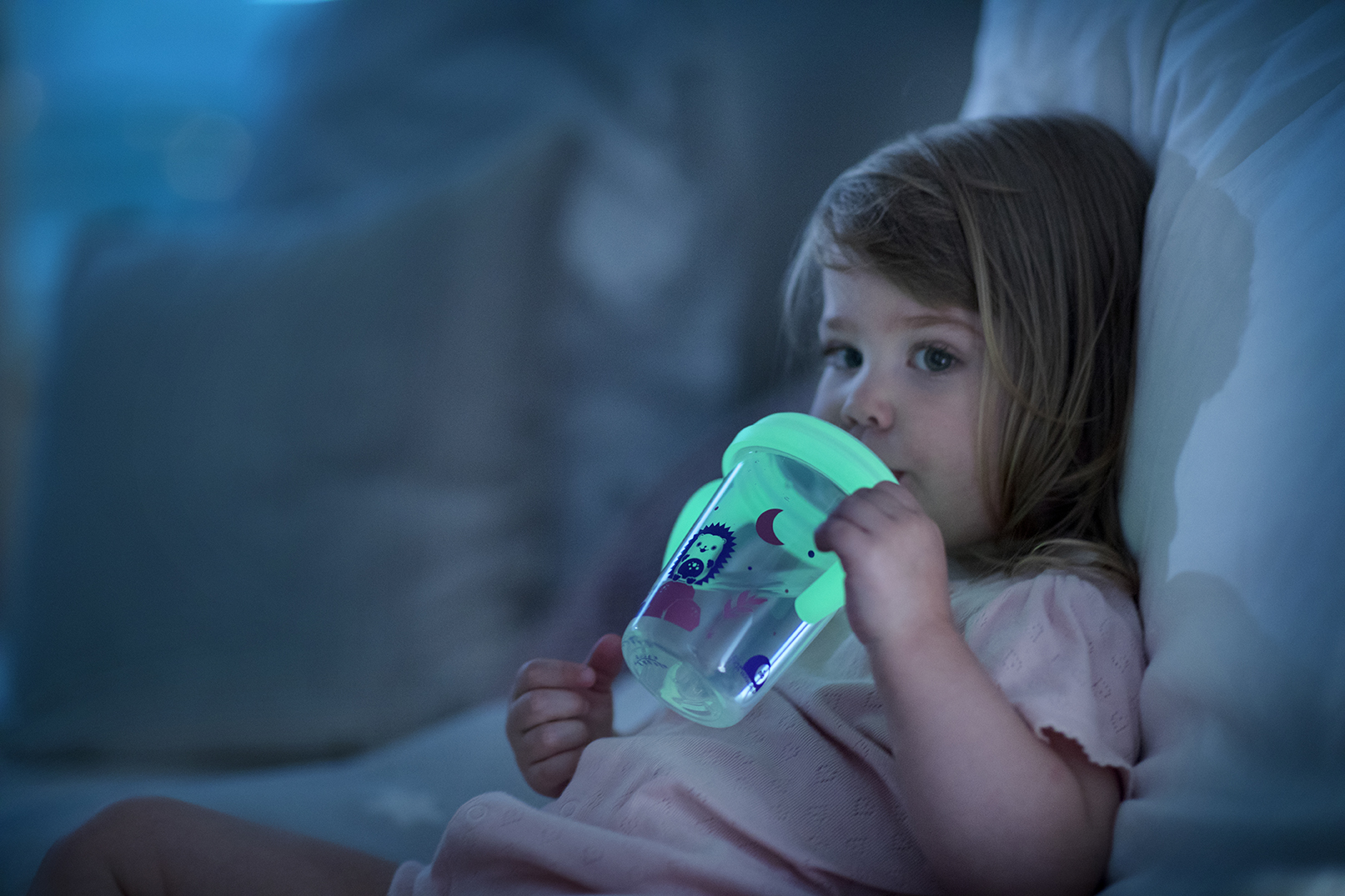 Поїлка Day & Night- особливо легко тримати завдяки ергономічній ручці для пиття, тому ідеально підходить для навчання пити самостійно