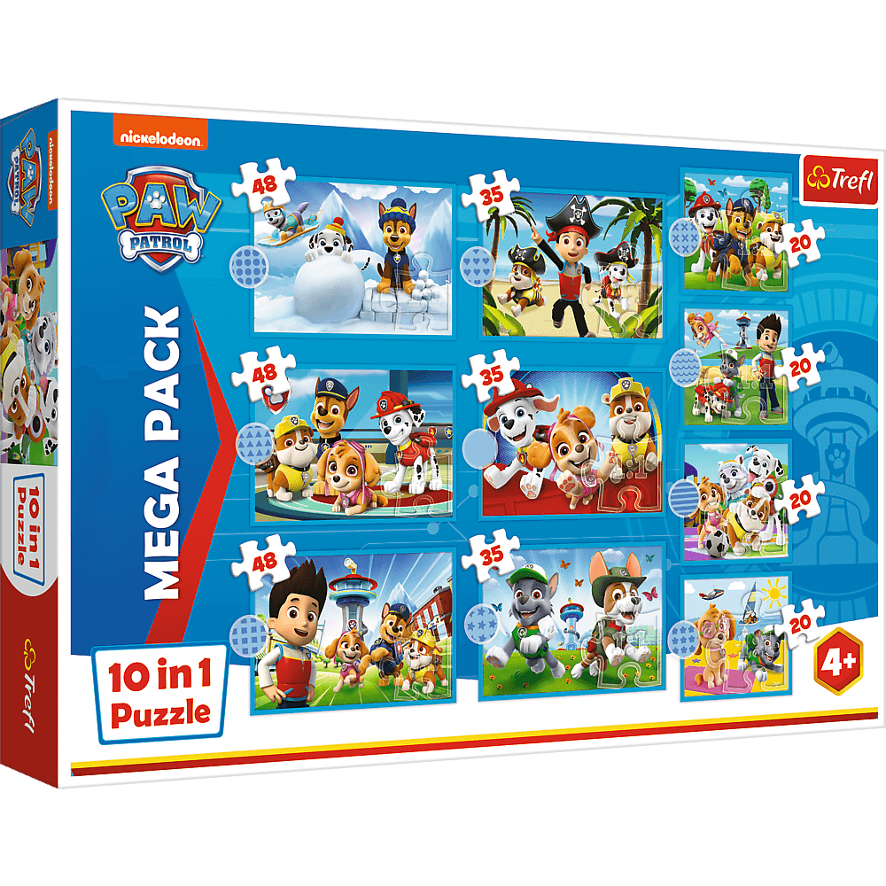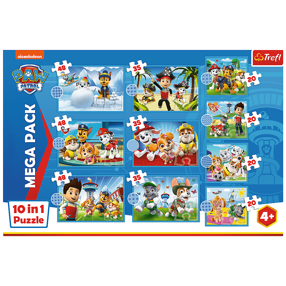 Команда Puzzle Everiley Dog Patrol, що складається з 10 незалежних головоломок, була створена для всіх шанувальників патрульної казки. Після закладення головоломки будуть створені зображення з розмірами 223x156 мм та 167x156 мм. Різноманітна кількість елементів дозволяє грати як молодших, так і трохи старших дітей.Продукт був виготовлений з високоякісних матеріалів, використовуючи спеціальний паперовий папір, що відбиває світло, що полегшує проведення.