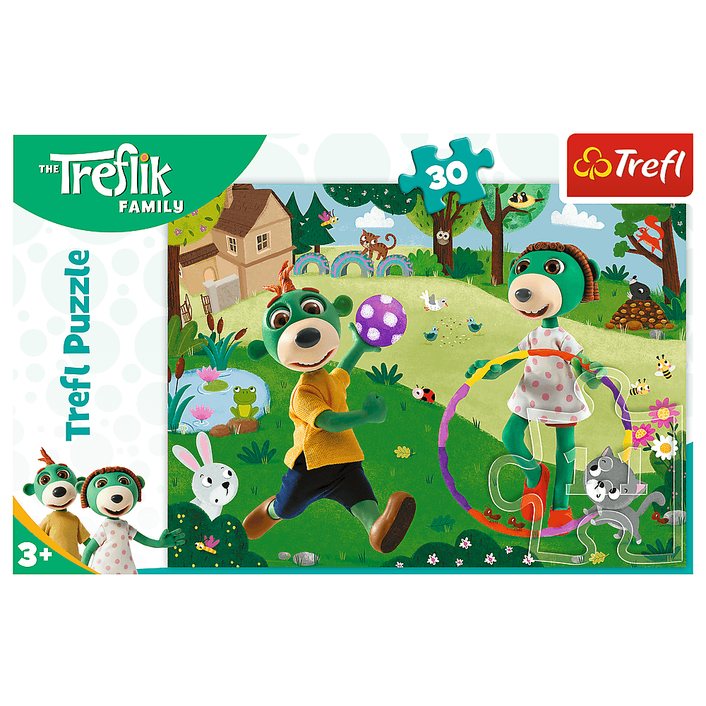 Активний день головоломки, що складається з 30 елементів, розроблених для всіх шанувальників та шанувальників анімаційної серії родини Трефлік. Після закладення головоломки буде створено зображення з розмірами 270x200 мм.Продукт був виготовлений з високоякісних матеріалів, використовуючи спеціальний паперовий папір, що відбиває світло, що полегшує проведення. Продукт був виготовлений у Польщі, а екологічні матеріали використовували для виробництва.