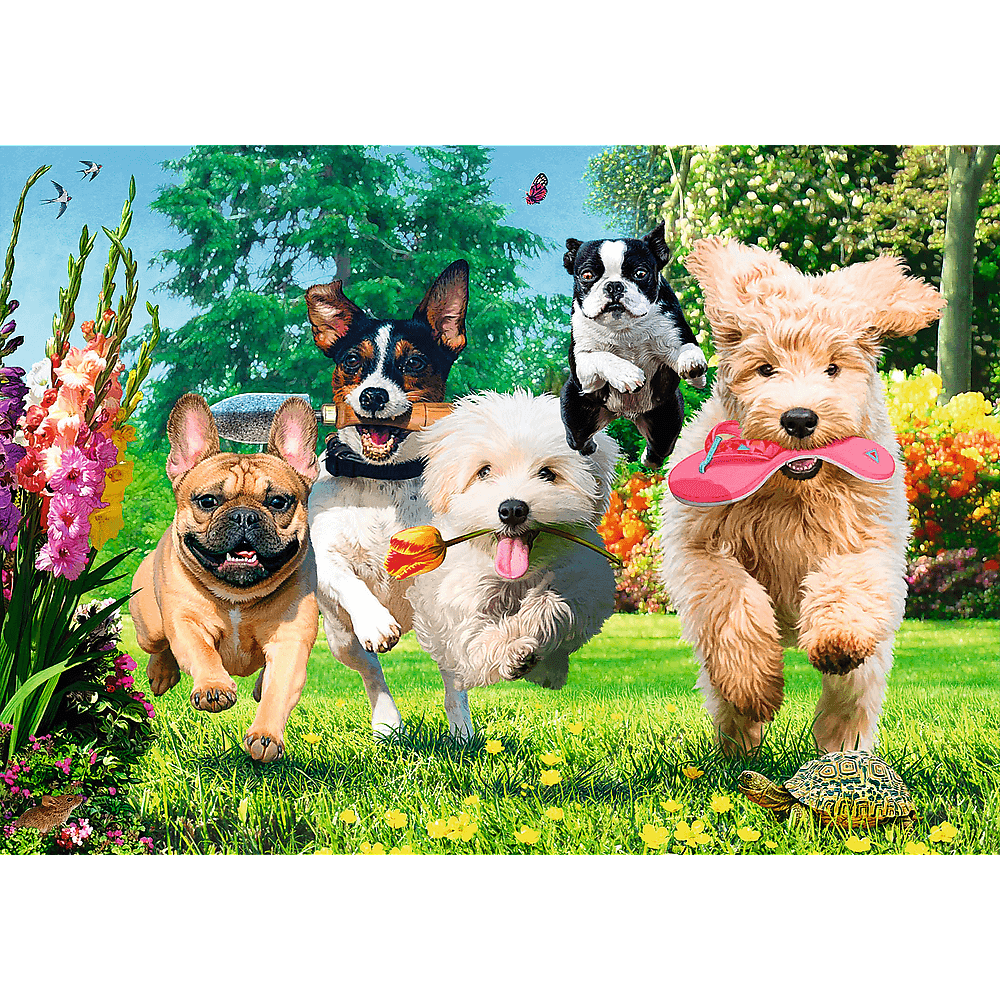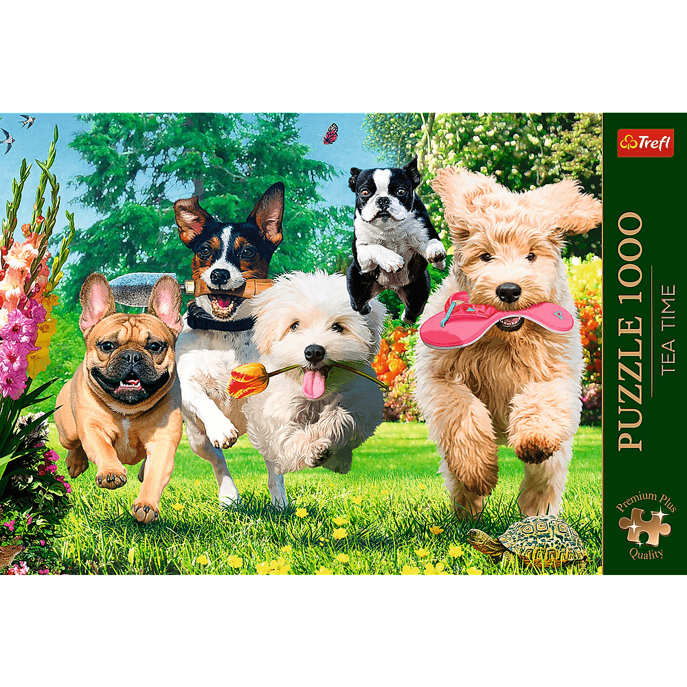Puzzle Trouble наближається! вони зображують чудових собак, спійманих під час бігу. Після їх упорядкування буде створено зображення розміром 683x480 мм.